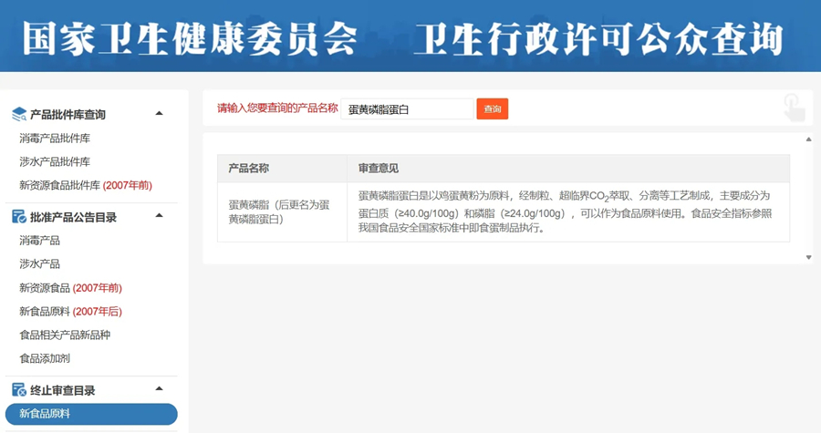 白云山漢方以蛋黃粉為原料,經(jīng)制粒、超臨界CO2萃取、分離等工藝制成的蛋黃磷脂(后更名為蛋黃磷脂蛋白),主要成分為蛋白質(zhì)(≥40.0g/100g)和磷脂(≥24.0g/100g),近日獲國家衛(wèi)生健康委員會新食品原料審查意見:可以作為食品原料使用。