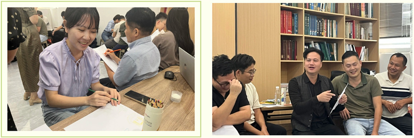 在療愈師的引導(dǎo)下,大家先在紙上用彩鉛各繪畫出代表5種心情的圖案,閉上眼睛,沉浸在悠揚的音樂中,通過深度冥想,釋放長期累積的工作壓力,找回內(nèi)心的寧靜與平衡?;迎h(huán)節(jié)更是將氣氛推向高潮,大家積極分享各自在療愈過程中的獨特感受,進(jìn)一步加深了療愈的認(rèn)同與喜愛。