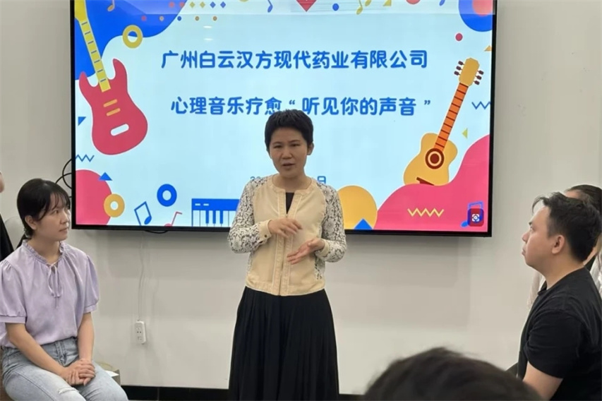 《禮記》記載:“凡音之起,由人心生也。人心之動,物使之然也。感于物而動,故形于聲。”為增強職工心理韌性,緩解心理壓力。2024年11月4日,白云山漢方工會一分會在廣州分公司員工活動室舉辦“聽見你的心聲”心理音樂療愈活動,公司黨委副書記、工會主席鄭燕華及近20余名職工參加活動。