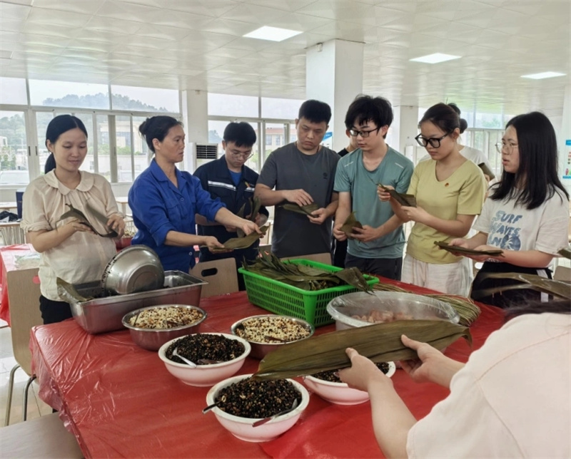 黨委副書記、工會主席鄭燕華帶領(lǐng)青年齊包粽子,現(xiàn)場粽葉飄香,大家圍在一起,互幫互助,折粽葉、添糯米、扎實線,歡聲笑語一片。此次此刻,粽葉化身“清廉衣”,糯米傳達“純粹白”,水草系緊“紀(jì)律繩”,大家紛紛拿出看家本領(lǐng),一個個飽含端午祝福,映襯廉潔過節(jié)的粽子誕生。
